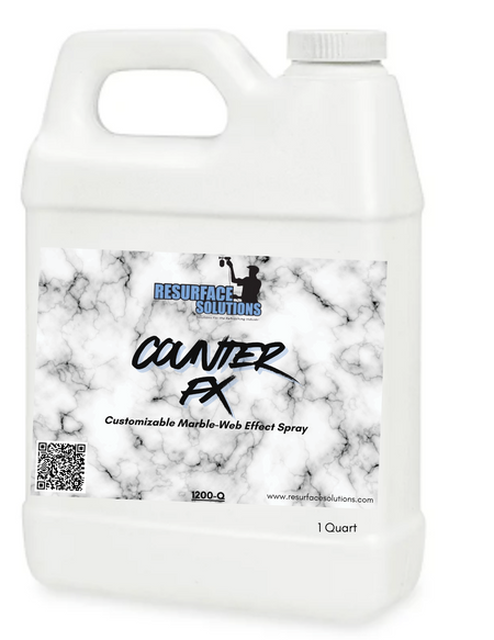 Counter FX is a product used to give a "marble effect" to refinished counter tops. Counter FX dries in minutes and can be knocked down to give a smoother surface. Also, can be sprayed while base coat epoxy is still wet to set in A necessary clear coat will protect the finish and give a nice shine.